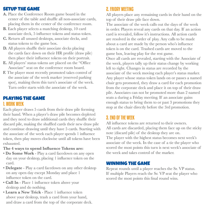 The Who, What, Why? Game Design Podcast "The game is a lighthearted look at the kind of stuff that may happen in a corporate office